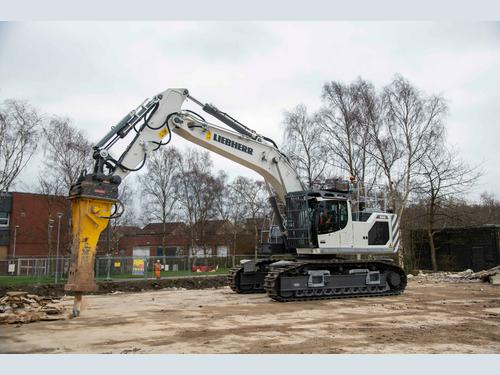 Elsewhere, the largest of the current Generation 8 line up, the R 945, was making its presence felt breaking out the foundations of a former civic centre. With an operating weight of up to 47 tonnes and supplied with the heavy-duty LC-V undercarriage (a standard HD version is available) it replaced a similar-sized R 950 from the previous generation.