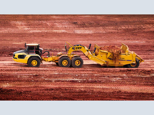 K-Tec Earthmoving Inc currently offer four sizes of scraper ranging from 21.5m³ heaped capacity and a payload of 30.8 tonnes up to the largest with a 48.1m³ heaped capacity and payload of 68.5 tonnes. The 1237 model is also available as a Train scraper. The conversion from a ADT dumper body to a ADT scraper hauler takes approximately 10 hours with no modifications done to the dumper body and can be reversed in the same amount of time to make this a very versatile earthmoving solution. With the comfort and ride that the Volvo ADT offers and the cushion ride control built into the K-Tec scraper, this makes for a very comfortable and operator friendly environment for the operator.