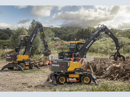 Following the highly successful introduction of the larger EW240E Materials Handler three years ago, Volvo Construction Equipment has introduced a twenty-two tonne version in the form of the EW200E. This, like its bigger brother, is a purpose-designed material hander that can be offered with the option of a gooseneck arm for 5-tine scrap grab, or a dedicated materials handling arm for use with rotating selector grabs.