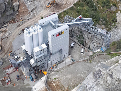 A new arch dam will be built in front of the monumental Spitallamm dam on the Grimsel that needs renovation. SBM Mineral Processing installed two plants type LINEMIX® 3500 CM 800-6 H plus a recycling plant for residual concrete at this challenging large-scale construction site located at 1,900 m above sea level. Just like the certified concrete mixtures, these plants fulfil all the sophisticated requirements of this centennial project in Switzerland.