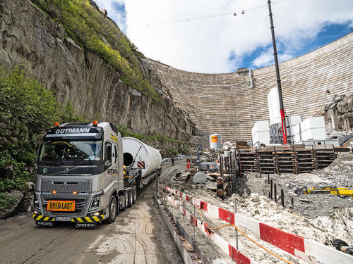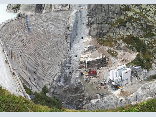 At almost 2,000 m above sea level, logistics is an enormous challenge indeed: Transportation over mountain roads, through tunnels and via material ropeways, confined space conditions, wind speeds far exceeding 200 km/h, snow dust avalanches, heavy snow loads and extreme temperatures make working conditions very difficult. Because of the long and snowy winters, building seasons last only from May to October, when more than 70 experts of the Joint Venture Grimsel are working there day after day.