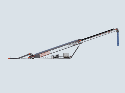 The Ship Loading TeleStacker Conveyor is best suited to load Panamax vessels and conveniently packages inside containers for overseas shipping. Models include units for both rear truck unloading and compact side unloading. The 170-foot-long (52m) conveyor’s belt is 42-inches (1,065mm) wide for production of up to 1,500 tons per hour (1,360 MTPH).