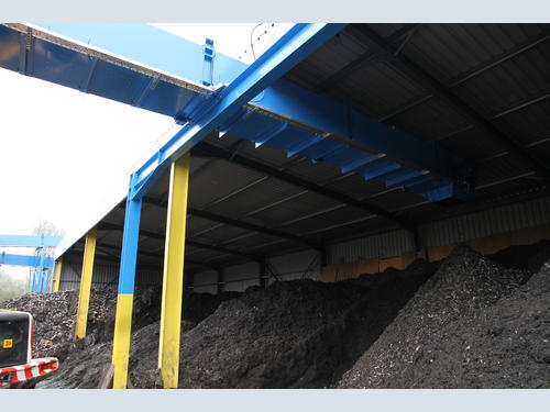 This system can deliver 10tph (average) with a maximum of 15tph of -100mm organic material and again constructed of CMC. This system consists of two sections which receive material from an existing picking conveyor. The first conveyor is 30m long and inclined at 14◦ and delivers feed into a simple hopper of the second 19m long horizontal section which subsequently delivers the material to stockpile.
