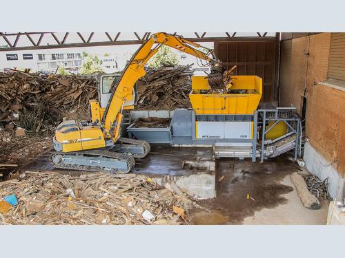 The result has been the installation of the static XR machine with Cutter configuration. Special wood knives have been integrated to equip the shredder for high throughputs of this often-aggressive material stream, and a 90mm screen with chip breakers will regulate particle homogeneity.