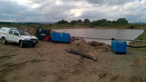 The two 8-inch diesel Super Wispaset pumps have been supplied to pump water from one lagoon to the clean water lagoon supplying the washing process plant. One pump is used continuously while the plant is in operation, with the second used intermittently in 11-13 hour shifts to move more water when required. The lead pump is supplied by a large, external diesel tank, while the second runs off its own integral belly tank.