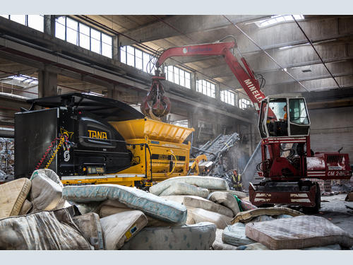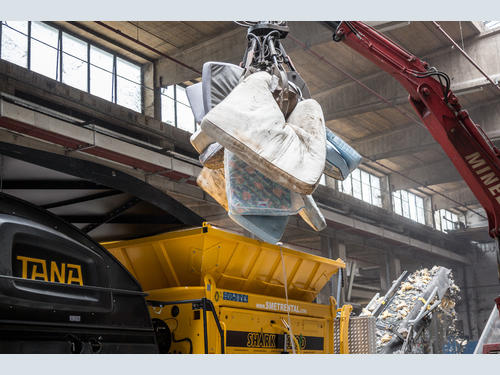 Instead of purchasing multiple machines for each waste type or end product size, one TANA Shark waste shredder can replace two shredders and a screen. It is capable of shredding various materials up to the toughest of them such as mattresses and tyres. As TANA shredder enable full control over the particle size from 50 to 500 mm, it is possible to perform shredding in just one pass and save both time and costs. Processing mattresses or tyres requires high torque and good separation of metals. In addition, the end product size must be adjustable to meet the various requirements for the use of the crushed materials. The slow-rotating TANA Shark waste shredder with its integrated rotor screen meets all these requirements. It is able to process the mentioned and many other types of waste to the correct particle size - even in one go. This reduces the volume of waste and at the same time allows recycling of the materials.