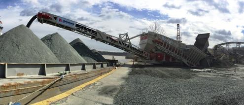 The End User is a significant producer of construction aggregates in North America (primarily crushed stone, sand and gravel). Critical to the project was that the Client’s need to tip directly onto a unit for barge loading that would eliminate double handling of material, thus reducing cost, reduce loading time and offer a higher quality of product due to the reduction of material handling time and methods.