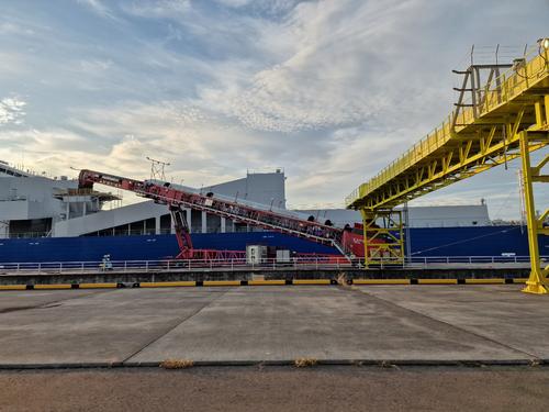 The Telestack system was selected to replace traditional grab crane methods, offering a more energy-efficient and dust-controlled alternative. With a peak loading rate of up to 2000 TPH, the TB 58 ensures rapid vessel turnaround while maintaining strict environmental standards.