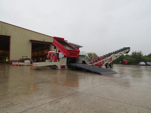 Another exciting development for the Telestack brand is the enhancement to the Telestack hopper feeder range. The MH 5680 Mulch Hopper is a track mounted fully mobile feeder conveyor designed to stockpile materials such as mulch, biomass, woodchips, shredded pallets, wood pellet, green waste, palm kernel shells etc. It can be directly fed by wheel loaders, grab cranes, wood grinders, shredders, screeners or trommels. The MH 5680 has a 1400mm (56”) wide feeder belt and steep 70° hopper sides. These features maximise the hopper opening to allow material to flow unrestricted onto the Incline conveyor. A rotating auger at the outlet aerates and untangles difficult materials and regulates the flow onto the incline conveyor. The unit has excellent mobility on site and will eliminate double handling of material, which reduces overall costs for the operator. The Revolution feature also means that the hopper feeder has a centre mounted slew bearing that enables 360° rotation of the hopper and boom. Ideal for barge loading and unloading, rail loading and unloading and stockpiling, the parallel travel feature enables the operator to manoeuvre the unit parallel to the vessel removing the need to reposition the unit, thus enhancing loading rates and efficiency! The Revolution option is available on all HF/LF/MH models.