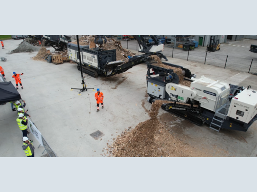 Speed Shredder and TMS 315 Metal Separator processing waste wood, a TBG 530T High