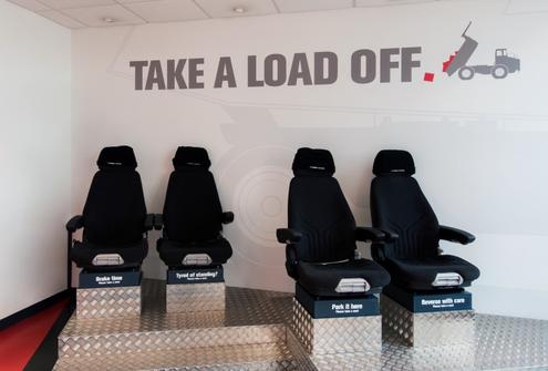 Created by Studio LR, the new design transformed Terex Trucks’ factory in Motherwell into an inspiring brand experience for staff and visitors. It honours the scale of the trucks and shines a spotlight on the people that make them, as the heroes of the brand, using quirky imagery and slogans. Components from the trucks have been utilised as part of the experience, in particular seats from the truck cabins have been used to create a waiting area in the reception.