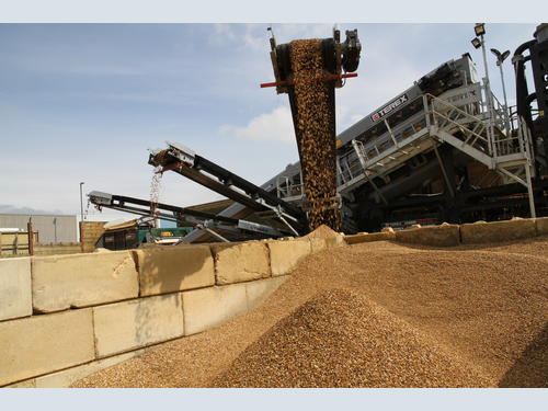 The Aggresand™ 165 uses the H12 (12M3) feed system which is fed by wheel loader via a heavy duty 4m static grid which are both powered by an integral 37Kw electric hydraulic powerpack.