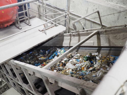 The shredded and moist material is transported by belt conveyor to an intermediate bunker. The conveyor is equipped with powerful overhead magnets which extract any metal materials en route to the bunker. An automated process crane then transports the homogenised mixture to concrete bunkers (the so-called rotting boxes) for biological drying. “We can only break down dry material mixtures into their valuable components by machine,” says Baldus.
