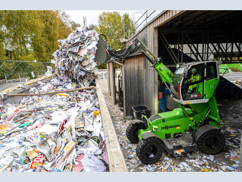 Flexible and multifunctional: In the new 4 tonne class, the SENNEBOGEN 3.40 G is not only aimed at customers from industry, demanding material handling or recycling, but also at sectors such as biogas plants or contractors in agriculture and municipal services. The various equipment can be operated flexibly at the push of a button, from bucket to sweeping brush and snow blade. The new SENNEBOGEN 3.40 G also shows its strengths when used with trailers. The infinitely variable travel drive with Compact Drive transmission ensures fast driving or high torque with up to 65 kN traction and thrust, depending on requirements.
