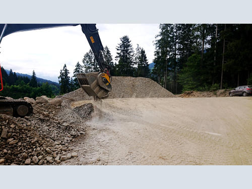 In Austria, an earthmoving and logistics company owns a stationary plant to produce gravel and sand. Meanwhile, in their recycling centre, they collect and recycle C&D waste and asphalt from their construction sites and use it as recycled aggregate. To get this done, they installed a BF80.3 crusher bucket on their excavator, replacing their stationary crusher for the practicality of a moving unit. Allowing the company to produce material of different output sizes independently and simplifying their maintenance also reduces costs and saves time.