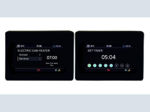 For those operators working in more chilly climates, they can now easily choose the time and days of the week where they would like to arrive in a pre-warmed and defrosted cab, thanks to the new programmable cab heater option. And the need to reach under the hood to turn a main switch off at the end of a shift is now eliminated when using the machine regularly.