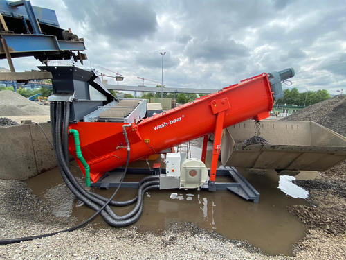 The current generation of systems is available as wash-bear® 2.0 in three models, which are designated as ‘S, L, XL’ depending on size. Their hourly throughput rates range between 100 t/h and 190 t/h - depending on the input. All types are designed with a mobile lift hook for easy transport.
