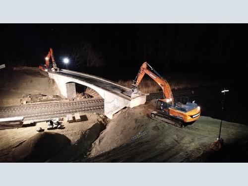 The schedule was tight and trains on the heavily trafficked railway line could only be stopped for exactly 72 hours. Over this time, it was necessary to create protection for the rail track bedding, tear down the bridge and restore the tracks to their original condition. Beller had to be particularly careful about a main data line that connects a large part of the region to the Internet and runs through the construction site area.