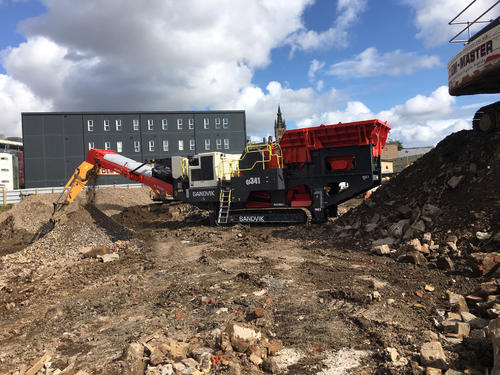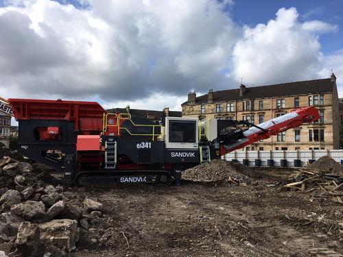 Highlighting the importance of highly mobile and effective crushing on site, and its recycling facilities, Dem-Master recently took delivery of a brand new QJ341 tracked jaw crusher from Sandvik Mobile Crushers and Screens. This highly productive, yet easily transportable piece of equipment has joined two other QJ341’s, in this case, being immediately put to work demolishing the former Glasgow Police Headquarters in Glasgow city centre. “We’ve been buying Extec / Sandvik tracked jaw crushers since the launch of the Megabite in 98 or 99,” explains Richard as to his choice of the Sandvik crusher. “It’s tried and tested technology and ideal for demolition work. We know them inside out, they’ve got the ‘gap’ which is ideal for demolition, and as we know them so well we can support them in the field. Also Sandvik machines have high residual values, and although not the cheapest we could have bought, certainly the best value.”