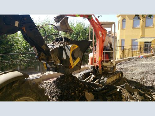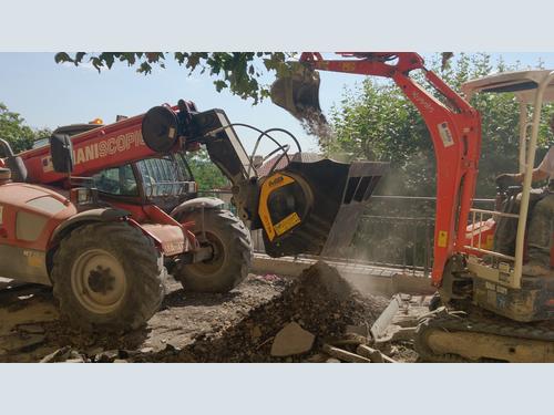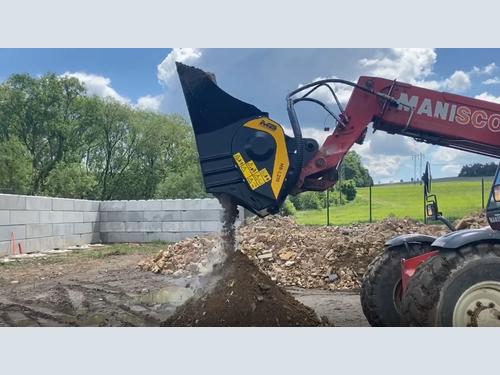 MB-HDS four different models will change a telehandler into a machine able to select and reduce a multitude of materials. From excavated soil to demolition debris, twigs, bark plasterboards, whatever is present at the site can be re-purposed immediately. The innovation of this line is how effortless the rotating shafts can be changed at the site. With one HDS unit and different rotating shafts, the telehandler can be considered a multi-purpose system able to process a high- quantity of materials.