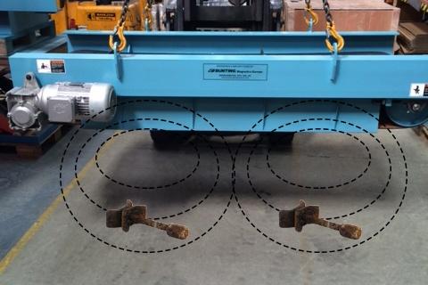 However, an Overband Magnet with a twin or double magnetic pole enables enhanced separation across the whole width of a conveyor and is better for separating long sharp ferrous metals like nails.