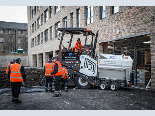 “We have formed quite a few strong relationships in the housing sector, especially while working for blue chip Tier 1 contractors such as Bellway, Redrow and, in particular, Persimmon,” continues Steve. “In fact about 40% of our work is contracting to these companies for finishing work on driveways, cul-de-sacs and access roads, so having a compact paver to carry out this work is extremely important. We have been waiting quite a long time for Volvo to launch this machine; so far, we think it has been worth waiting for. The overall build quality and low noise emissions are impressive. It also lays an exceptionally high quality mat. The machine is also very maneuverable, with a base screed width of just 1.75 metres, which means we can get almost anywhere with it!”