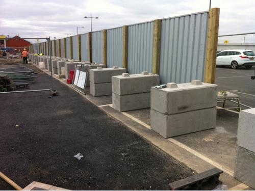 Precast concrete Kentledge blocks are used to act as ballast or counterweights for fencing, hoarding, scaffolding, or for various temporary works. They can also be attached to wire ropes which are fixed to the structure to provide greater stability.