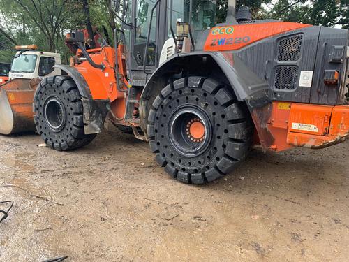 Hitachi wheeled loaders are used on O’Donovans fully enclosed material recycling facility near Hanger Lane, London. Fitted with solid tyres sourced from specialist tyre supplier, Tyre Boss, the machines sort and process a myriad of construction and demolition waste. TY Cushion solid tyres are crucial to the productive operation of the loaders; eliminating any downtime due to punctures or tyre damage.