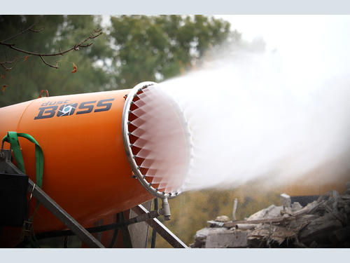 “Atomized mist technology has been widely accepted as an extremely effective approach to dust management,” observed BossTek Sales manager Mike Lewis. “This new development will allow users to tailor the fan speed to match the job. It’s useful in a number of different industries, but one good example would be demolition projects,” he said.