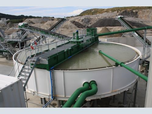 The wastewater from the plant is first delivered to an AquaCycle A1500 thickener where it is dosed with flocculant. This forces the very fine particles of silt and clay to bind together and sink to the bottom of the tank. Meanwhile, the recycled water overflows the peripheral weir and is stored in a concrete buffer tank before being recirculated to the washing plant.
