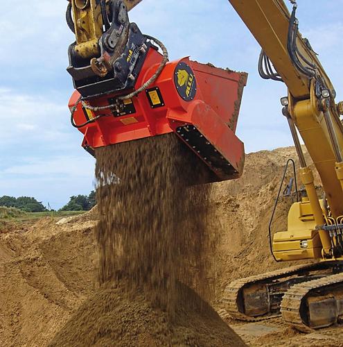 The ALLU D-Series Screener Crusher bucket screens, crushes, pulverizes, aerates, blends, mixes, separates, feeds and loads materials all in one stage – increasing an operation’s efficiency and profitability. The unit is designed to process wet or dry materials quickly and efficiently, reducing cycle times and resulting in increased production and substantial savings on operating costs. The units easily handle topsoil and dirt, excavated and waste soil, demolition waste, construction waste, milled asphalt, coal, oil shale, limestone, contaminated soil, clay, peat, bark, compost, bio-waste, glass and other materials. With more than 100 models in the line, ALLU D-Series Screener Crusher bucket attachments are available to fit any excavator, wheel loader, skid steer loader or backhoe.
