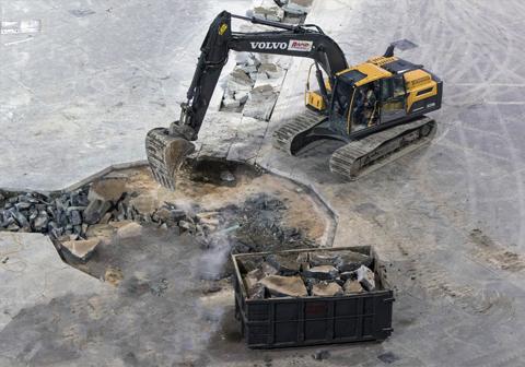 To Meitsch’s surprise, the unexpected event resulted in a grand slam. “The whole process of breaking and removing that extra concrete took less than an hour with the EC220E,” he says. “We kept right on schedule.”