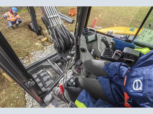 Most mishaps on site are due to attachment compatibility and tool changeover. To address this issue the ECR58 has a comprehensive range of attachments which are tailored exactly to the machine and easy to switch over. It includes buckets, breakers, thumbs, plus the new Tilt Quick Coupler – featuring a tilting angle of up to 2 x 90°. Hydraulic attachments can be operated with precision from the proportional fingertip controls, and flow settings are easily customizable thanks to new work modes. A short press on the work mode button will take the operator to a menu where machine settings can easily be matched to the attachment installed. Operators can create up to 20 tools in the library. For each tool, a large set of parameters can be adjusted to perfectly match the machine to the application at hand.