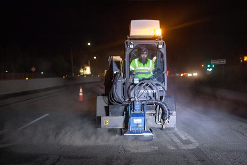 “Volvo skid steers have a very high rate of flow and head speed,” he explains. “For example, in second gear, we reach around 13-14 mph. Compared to the competition, the MC115C has the ability to cut the time taken to remove reflectors from a four-mile freeway closure by half. Plus, we benefit from a fully enclosed cab with air conditioning and heated seats for less than the closest competitor.”