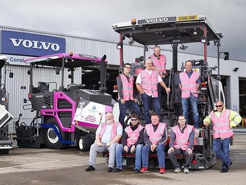 UK contractor Aggregate Industries is helping to raise awareness of cancer research with two P6870C ABG pavers, supplied in a pink foil finish by Volvo Construction Equipment.