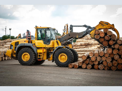 Furthermore the patented TP loader linkage system on Volvo wheeled loaders lends itself perfectly for log handling applications since the machines demonstrate a high degree of breakout torque when crowding. This is due to the crowd ram pushing on the positive side of the cylinder as opposed to pulling on it, as can be found on Z bar linkage systems. The breakout torque for example on the L150H is a massive 347KNm. In addition to the benefit of a high breakout torque, the Volvo TP linkage system is still able to demonstrate parallel lift whether the attachment is a bucket, pallet forks or log grapples.