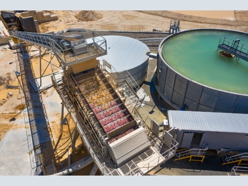This process is sped up with the use of a Flocculant Dossing Unit, which dosses the sludge on its way to the rake thickener. The flocculant that is added to the sludge causes the waste particles to bind together, creating a particle with a larger mass, which then sinks to the base of the tank faster. Dossing the sludge with flocculant dramatically increased the speed at which the clean water can be recycled back into the wash plant.