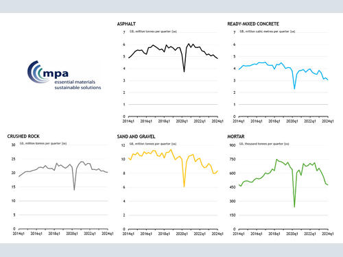 The MPA has released the results of its quarterly members’ survey detailing 2024Q1 sales volumes for primary aggregates, asphalt, ready-mixed concrete, and mortar, collectively seen as an important barometer for the construction industry as a whole.