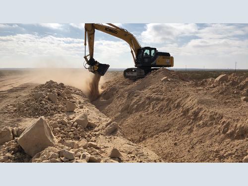 Let's move on to the United States and look at a high-profile trenching operation. The job on this site was to create backfill for a trench where the pipelines will be placed. An MB-HDS320, mounted on a SK300LC Kobelco, helped break down the sand and rock, enabling the customer to achieve outstanding results in terms of time/output ratio.