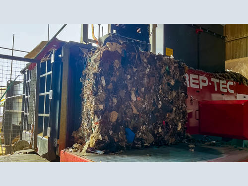 REP-TEC, the market leader in energy efficient twin ram balers, supplied the fully automatic baler, which is now running at full capacity, producing bales every 2.5 minutes, with individual bale weights of up to 1.2 tonnes. This twin ram is REP-TEC’s flagship Goliath baler, the largest twin ram baler in REP-TEC’s product portfolio, delivering a massive throughput, significantly outperforming the facility's previous equipment.