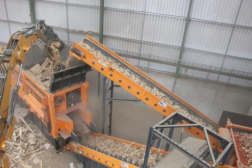 The company was taking wood waste across the spectrum of grades from local commercial customers, and shredding the material for biomass, using a mobile Doppstadt DW 3060 slow speed that would be tracked over to the wood shed from another part of the site twice per week. The volume of material however was continually increasing and was becoming too great for the part-time mobile shredder. Clearly something had to be done with the 10,000 tonnes of waste wood they were getting in.