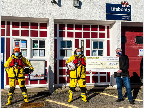Today, McCloskey Equipment turned every Like into £1.00, donating a total of £500.00 to the RNLI. Fittingly, the cheque was handed over by the brothers’ father Jim, an Isle of Mull resident, to the RNLI in Tobermory. The donation will enable four members of the crew to be completely kitted out in proactive outwear, contribute to additional PPE expenditure, a considerable additional expense of the Covid pandemic, and support the upkeep of the station’s boat.