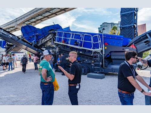 Another market première also led the line-up of machines presented by Kleemann . The MOBISCREEN MSS 1102 PRO, the first scalper of the PRO Line series, is now available on the North American market. The robust plant is designed for efficient processing of materials at rates of up to 827 US t/h (750 t/h) and is ideal for use in quarries. High throughput rates, flexible configuration options and an intuitive plant control concept ensure high productivity and safety.