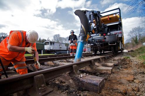 Using a boom-mounted 8 inch suction hose and DISAB's equivalent of a Playstation console, one chap can provide the equivalent of turbo-charged keyhole excavation for any trackbed requirement: power transmission, telecommunications, cabling, track repairs, etc. As trackbed excavation in the UK is normally done by hand, the RailVac is positively revolutionary. It's certainly far more efficient and much more cost-effective - exactly what Network Rail and all its contractors need for 21st century rail maintenance and renewal. Watch the RailVac at work on http://en.railcare.se/export