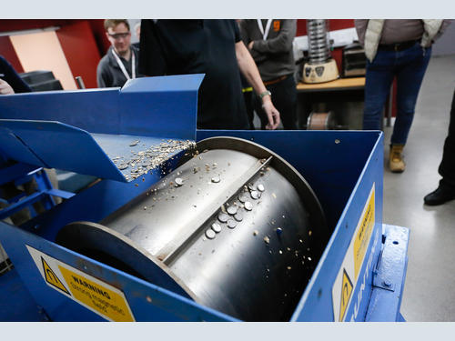 The tour then moved to the heavy recycling test area, with Bunting’s Phil Tree and Michael Allen staging separation demonstrations on the Eddy Current Separator, and the HISC and SSSC Stainless Steel Separators.