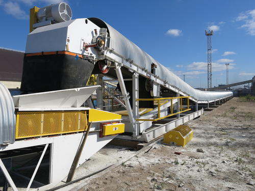 The operation utilizes a total of 1,500-meters of modular conveyor sections (at lengths of 10-feet each and belt widths of 762 to 914mm) which is currently divided into six different overland systems of 150- to up to 300-meters. “It’s easy to reconfigure any one of our modular overland systems to cost-effectively meet our changing requirements each year. As an example, during last season, we easily pulled 75-meters out of one system. Also, while we generally operate on level ground, next season we will be moving a section to accommodate material transfer on an area with a 15-percent incline,” says Hannover. He adds that installation is “pretty much a breeze. Once we got the pattern down, three crew members marched right down the conveyor corridor and were able to assemble 300-meters of overland conveyor sections in a ten-hour day.” The crew used a forklift and a skid steer loader with no need for cranes or other heavy equipment.