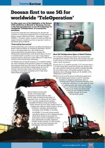 In what wass one of the highlights of the Bauma 2019 exhibition in Munich in Germany, Doosan is the first manufacturer to use 5G technology for worldwide ‘TeleOperation’ of construction machines.