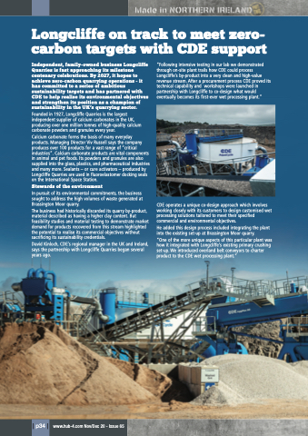 Independent, family-owned business Longcliffe Quarries is fast approaching its milestone centenary celebrations. By 2027, it hopes to achieve zero-carbon quarrying operations - it has committed to a series of ambitious sustainability targets and has partnered with CDE to help realise its environmental objectives and strengthen its position as a champion of sustainability in the UK’s quarrying sector.