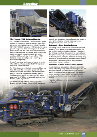 Peterson’s three-stage grinding process with an up turning rotor and large grate area enables the 5710D to produce materials to exact specifications.
