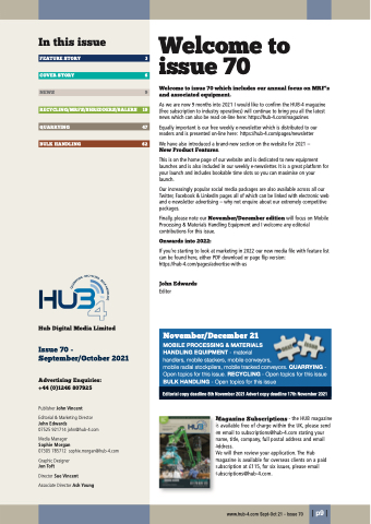 Welcome to issue 70 which includes our annual focus on MRF’s and associated equipment.